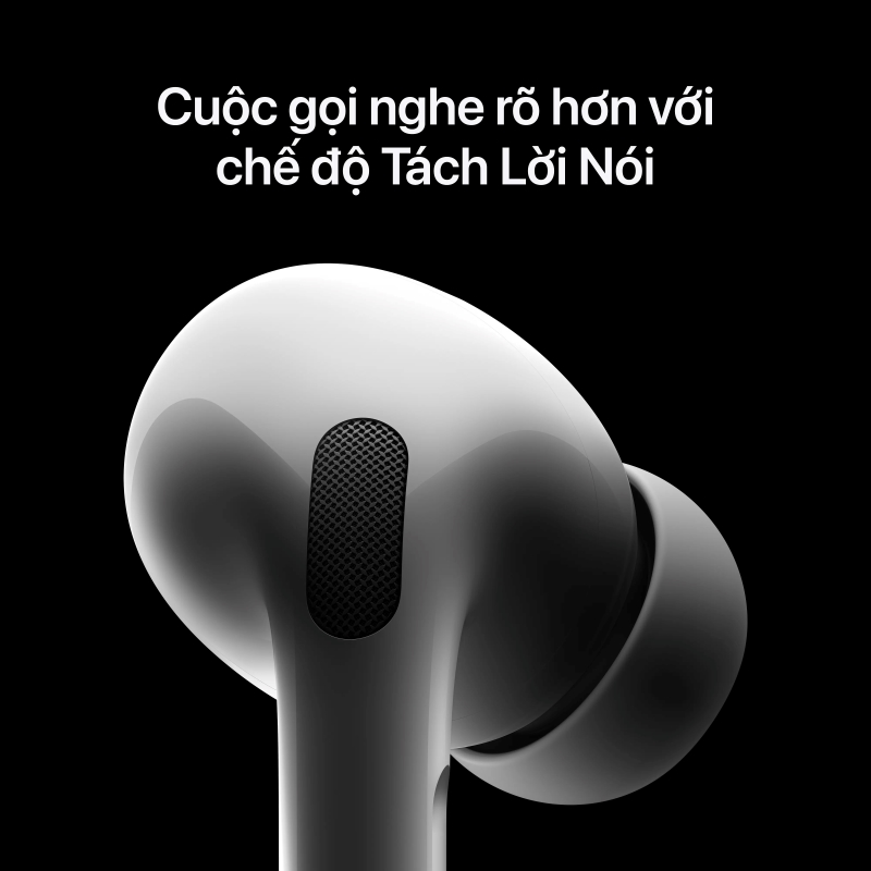 AirPods Pro 2 được trang bị chip Apple H2 cùng hệ thống micro kép và thuật toán xử lý âm thanh tiên tiến. Công nghệ Active Noise Cancellation (ANC) cải tiến giúp loại bỏ hiệu quả tiếng ồn môi trường, cho trải nghiệm nghe – gọi rõ ràng và riêng tư hơn, kể cả trong không gian đông người.