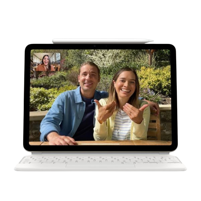 iPad Air 6 được tích hợp camera trước góc siêu rộng 12MP hỗ trợ Center Stage – tính năng tự động căn khung khi gọi video, giúp các cuộc gọi FaceTime trở nên sống động và rõ nét. Đây là điểm cộng lý tưởng cho học online, họp nhóm hoặc trò chuyện cùng người thân, bạn bè.