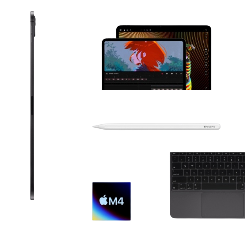 iPad Pro M4 là bước tiến đột phá với thiết kế siêu mỏng, màn hình OLED Ultra Retina XDR siêu nét và hiệu năng mạnh mẽ nhờ chip Apple M4 mới nhất. Thiết bị hỗ trợ công nghệ ProMotion 120Hz, camera hỗ trợ quay ProRes chuyên nghiệp, đồng thời tối ưu trải nghiệm sáng tạo và làm việc với Apple Pencil Pro và Magic Keyboard.